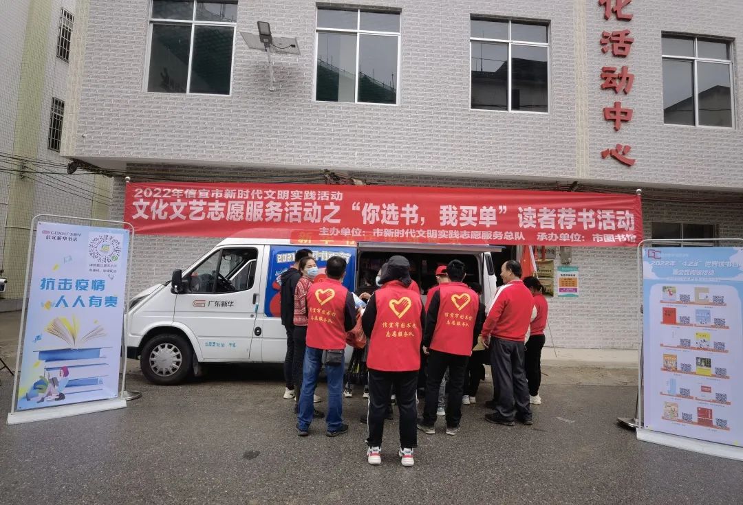 4月19日到23日,信宜市图书馆联合广东新华发行集团信宜新华书店有限公司深入全市19个镇街,巡回开展“你选书,我买单”读者荐书活动,向全市读者征购图书3800册,每个镇街分馆各200册。
